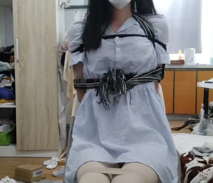 编号3401 凉叶子_【长裙叶子】严密的胶带x绳子 直臂双重捆绑,薄肉丝撩裙挣扎 1V 1P