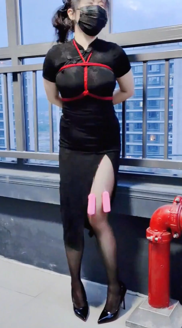 编号0645 【栗栗子原创】《沦为玩具的旗袍少女01》天台束缚、户外强高,旗袍少女羞耻调教、胸缚、蟹腿缚、高跟鞋、黑丝 1V 1P