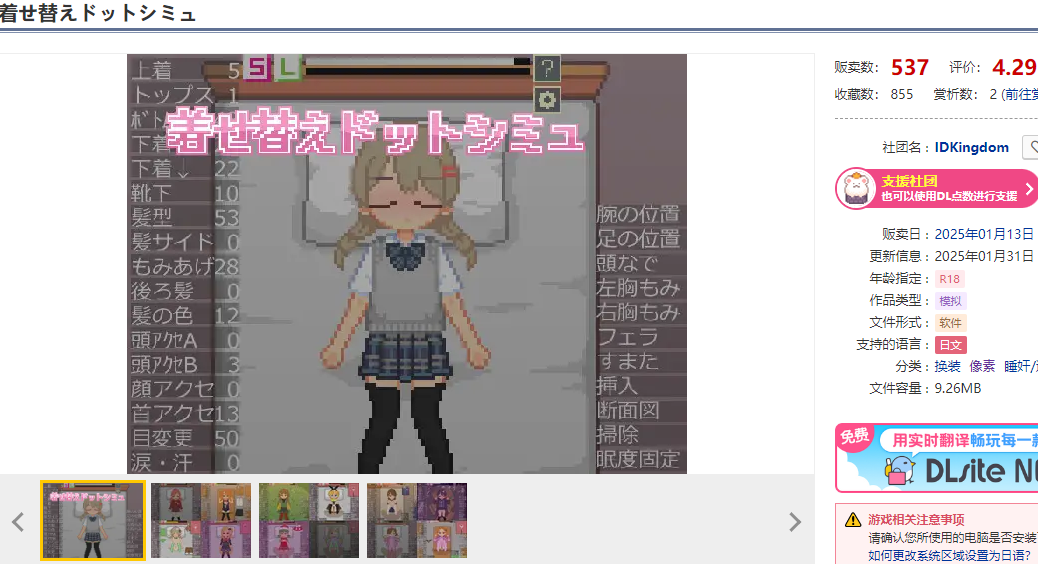 DL1月新作【互动SLG/像素全动态/汉化】 换装点阵模拟(着せ替えドットシミュ)V1.0 AI汉化【800MB/FM-百度直连】