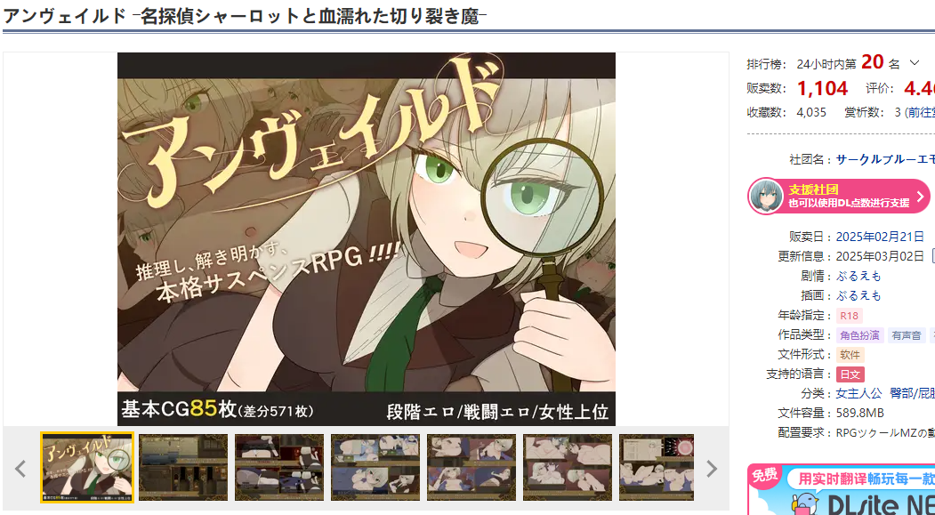 DL2月新作【探索RPG/战斗H/汉化】Unveiled ―名侦探夏洛特与血染的撕裂魔―(アンヴェイルド ―名探偵シャーロットと血濡れた切り裂き魔―)V1.16 AI汉化【1.50G/FM-百度直连】