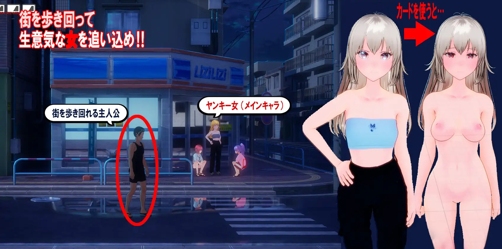 玩家在早晨、白天和夜晚的街道上行走,与多位女主角接触,并使用卡片来“引导”她们。