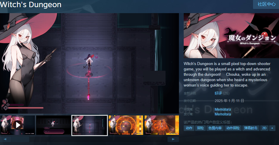 《魔女的地下城》是一款小型像素俯视角射击游戏,你将扮演一位魔女,深入地下城并努力逃脱!