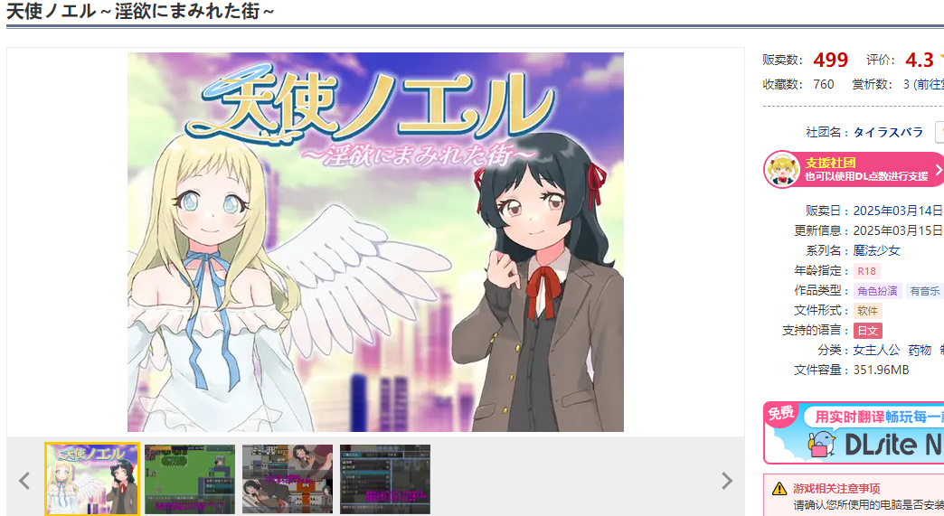 DL3月新作【探索RPG/偷摸暗示/汉化】天使诺艾尔~沉沦欲念之都~(天使ノエル~淫欲にまみれた街~)V1.0.1 AI汉化【1.10G/FM-百度直连】