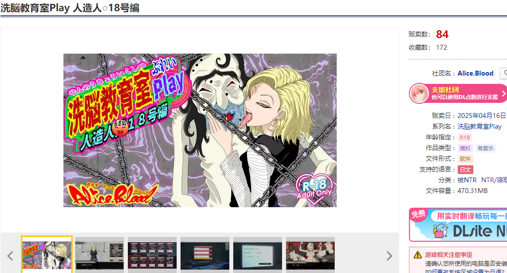 本作是通过性快感洗脑人造人18号并使其成为恋人的调教游戏。