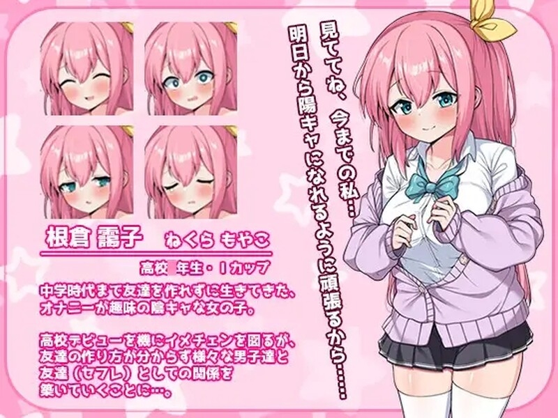 为高中出道做准备,同时独自在房间里练习自我介绍,以告别初中时期害羞的自己。