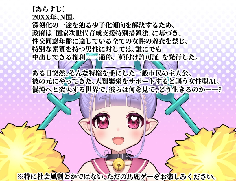 这是一个关于在女性被迫裸体生活的世界中,获得"自由配种权"的男子与其搭档AI的故事——