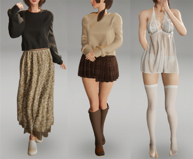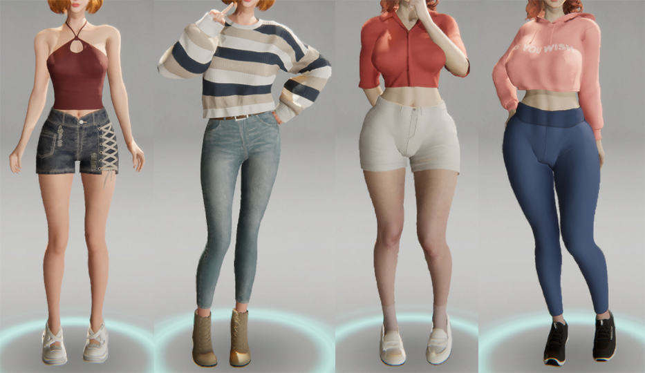 ※因为早期设计服装与动作时,团队并未设想到孕肚系统,部分服装跟动作在孕肚状态下会有较明显的穿模