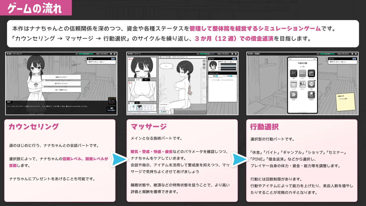与娜娜建立信任关系,同时管理资金和各种状态,经营整骨院模拟经营游戏。
