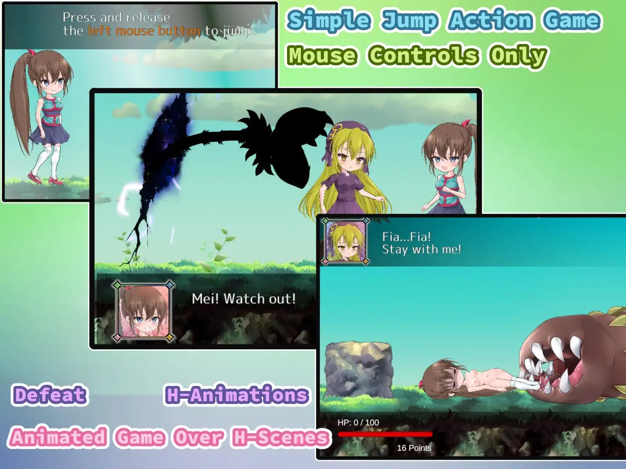 仅需鼠标即可游玩的轻松跳跃动作游戏。・Q版角色受伤动作:4种
