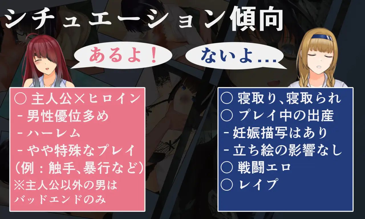 情色场景:主人公与女主角的和奸(包括正常玩法到异常玩法(触手、SM、轻微猎奇))作为系列编号2的作品,故事上与前作略有联系,但无需游玩前作。