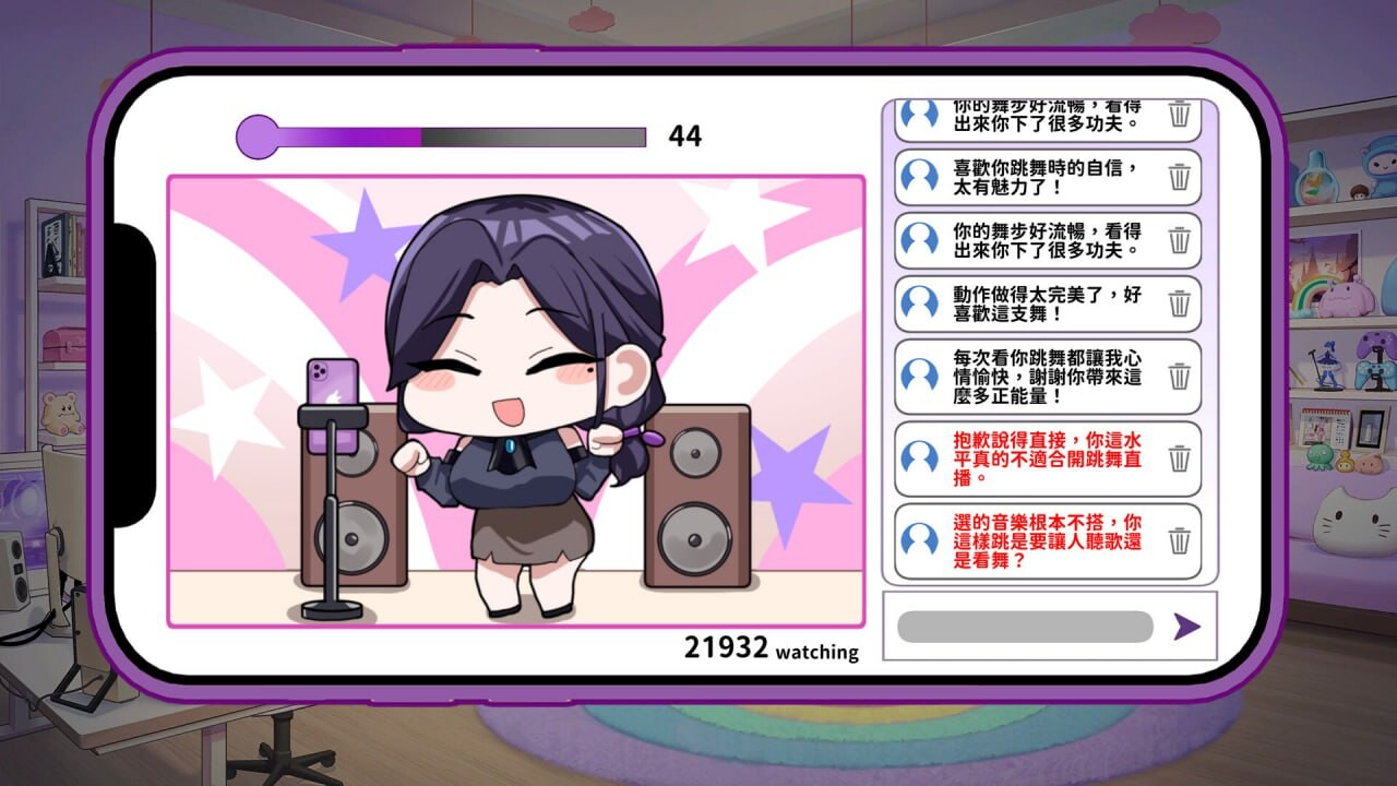 陪伴她完成每一次拍摄与挑战,一起养成专属于你们的角色品牌。轻松上手的模拟玩法