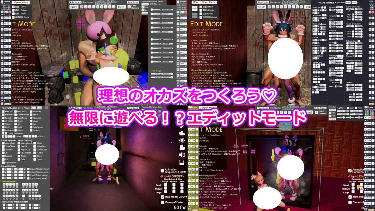 调整纹理大小并替换纹理!发挥你的创造力,重现你最喜欢的场景!・令人心醉的色情音效。包含兔兔莉莉姆的呻吟声!可随意自定义水声和撞击声!