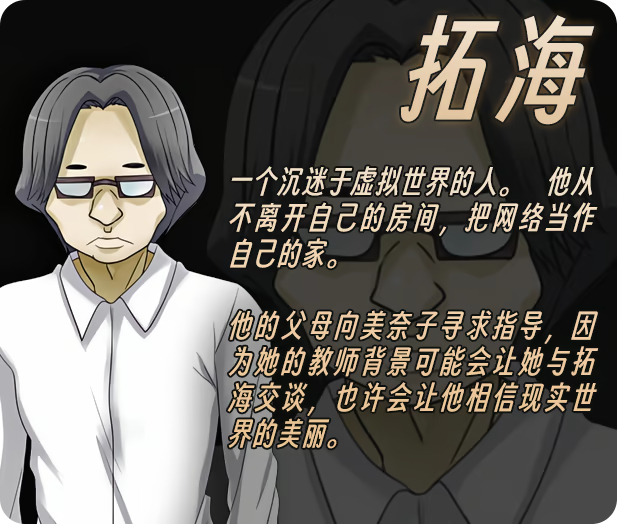 曾赴东京大学就读,因适应不良返乡后长期闭门不出。