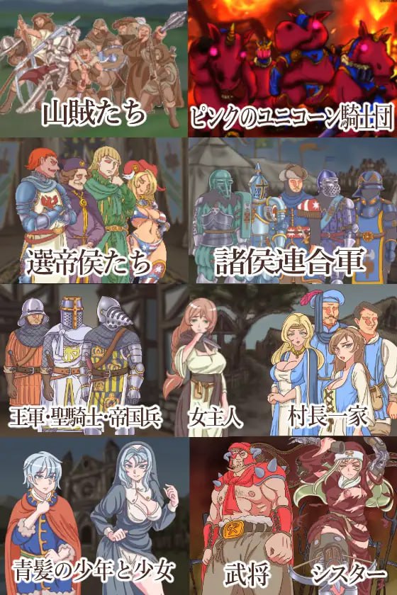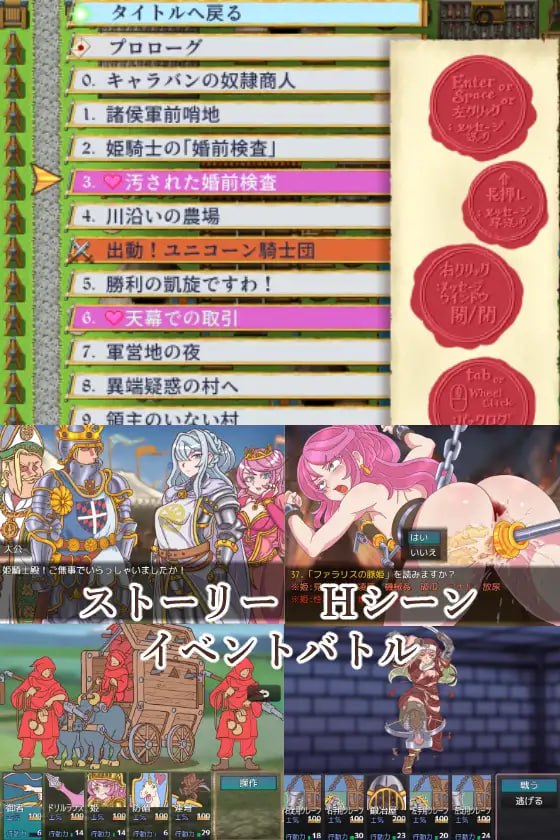 标签:#RPG #AI汉化 #PC #MTool #NTR #背德 #暴力 #特殊癖好 #致郁 #分娩在疫病肆虐、暴政横行、异端蜂起而陷入混乱的王国中,诸侯联军开始大举入侵!掳走公主与姬骑士姐妹的山贼们为求钱财,将她们带往诸侯军营地。等待在那里的,既有姬骑士的未婚夫,也有暗中策划阴谋、企图将王国据为己选的选帝侯们。就在被山贼们轮○后怀上身孕的姬骑士陷入绝望之际,婚礼与加冕典礼的筹备仍在进行;而身为王族却备受轻视的公主一怒之下,竟将山贼们册封为“粉红独角兽骑士团”,并命令他们开始肃清异端!