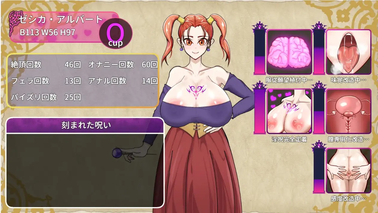 外观会根据盔甲和游戏进度而变化。您还可以查看诅咒的进度和手淫的次数。