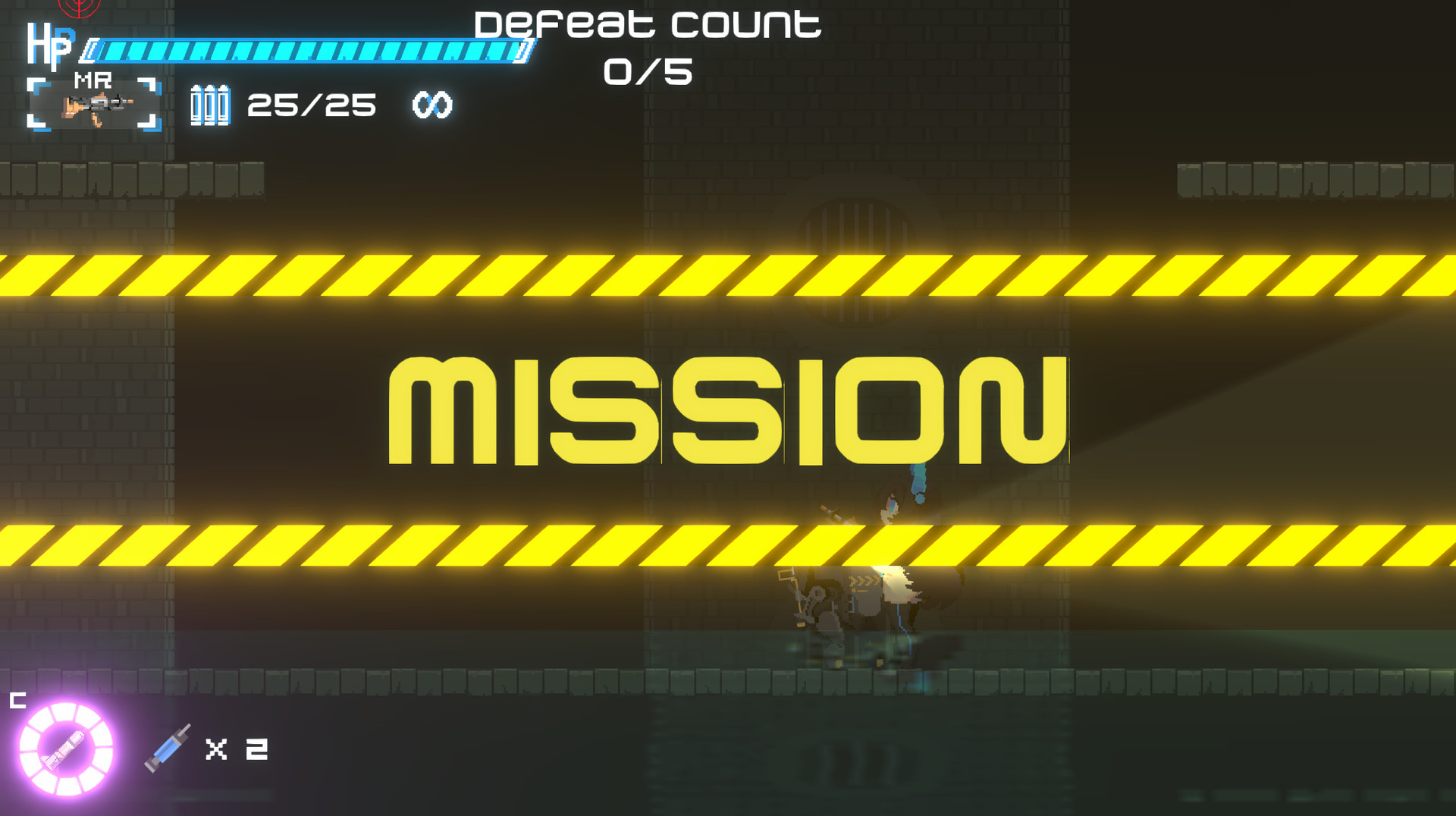 游戏内容包含2D像素平台射击游戏