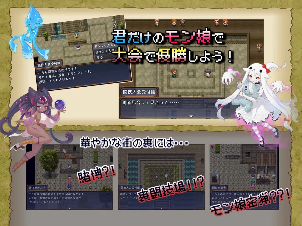 给魔物娘喂肉来让她们成为伙伴,通过配种创造新的魔物娘,并不断强化她们的正统魔物娘RPG终于登场…!!