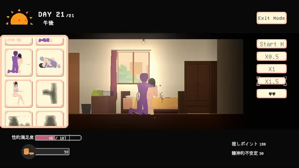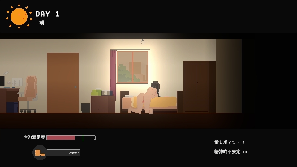 某天,当她一如往常地沉浸于使用自慰素材自慰时,想象开始失控,一个拥有与至今为止所了解的推截然不同性格的全新“他”的实体竟被具象化了出来。为了阻止这个“他”对日常的侵蚀,或许只有参加近期即将举办的他的真人粉丝活动,直接与真正的本人面对面才行。游戏特色