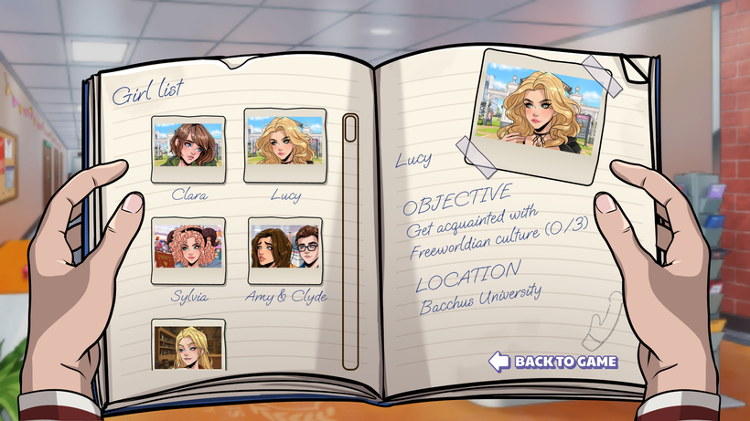《移居自由世界》是一款融合了恋爱模拟和点击式冒险元素的西方成人游戏。玩家将扮演来自我们世界的转学生大卫·考菲尔德,他必须适应位于科罗拉多州红岩城的巴克斯大学里狂野而充满性爱的新生活。